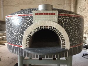 La première, la plaque de cuisson proprement dite, est fabriquée avec des matériaux volcaniques spéciaux, de 6 cm de long, qui ont la propriété d’accumuler rapidement la chaleur nécessaire à la cuisson; le second est formé par une base en ciment réfractaire et sable volcanique qui absorbe la chaleur et la renvoie au premier; c’est un isolant spécial qui agit comme un miroir sur la chaleur, la repoussant vers le haut; les deux autres couches sont composées de sels naturels qui ont pour fonction de sécher l’humidité contenue dans les pizzas.
